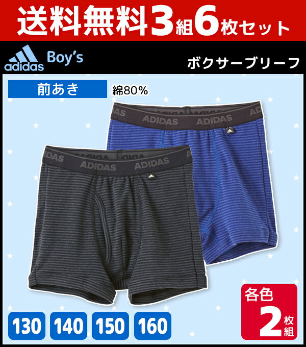 送料無料3組セット 計6枚 ジュニアメンズ adidas アディダス ボクサーブリーフ 2枚組 前あき 130cm 140cm 150cm 160cm グンゼ GUNZE ボクサーパンツ | ボクサー キッズ 男性下着 男の子 子ども こども ジュニア下着 スポーツ まとめ買い 子供 セット ジュニア 男児 前開き